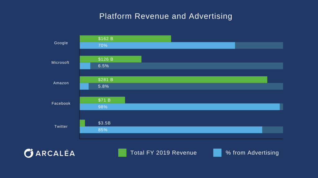Note: providers of predominantly free services such as social media and search engines are subsidized almost entirely by advertising, while e-commerce sites and product companies rely on profit from product margins.